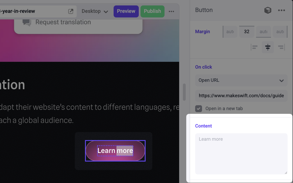 display property of the ReactNode that is passed to the control. This is useful for visually editing buttons and links.| Mode | Description |